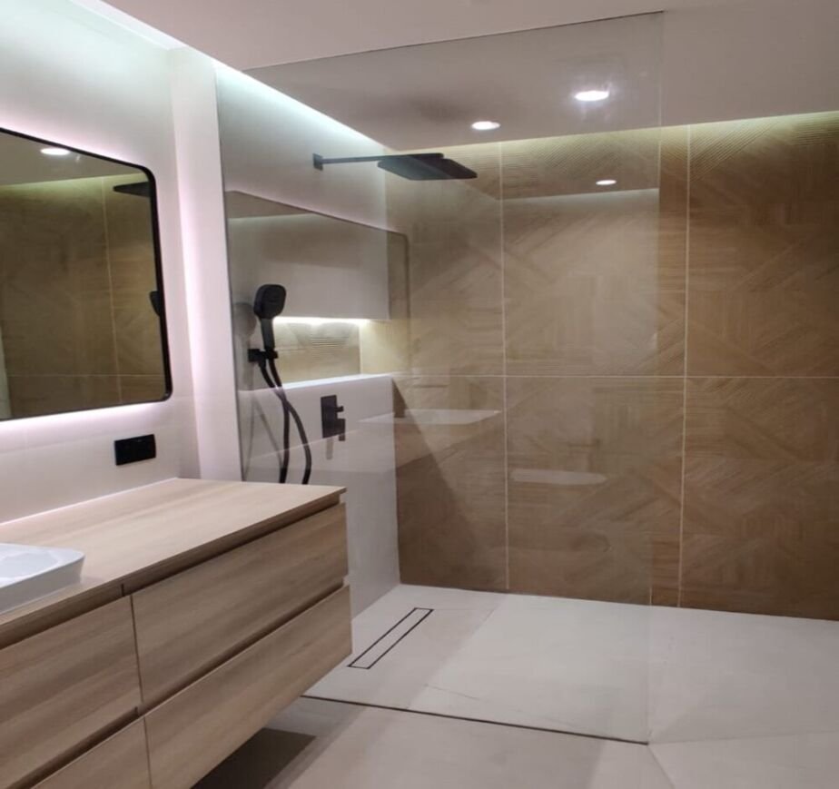 Complete bathroom remodeling including fixture upgrades, tiling, flooring, plumbing, lighting, and finishing, creating a modern, functional, and elegant space.